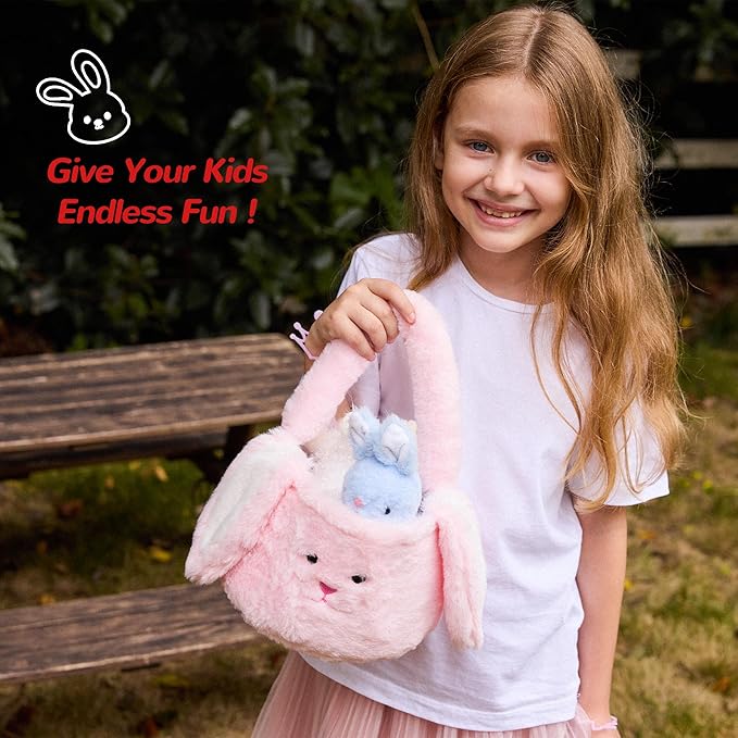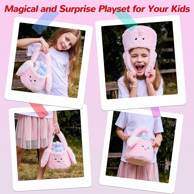- ๐ ๐ฎ๐ด๐ถ๐ฐ๐ฎ๐น ๐ฎ๐ป๐ฑ ๐ฆ๐๐ฟ๐ฝ๐ฟ๐ถ๐๐ฒ ๐๐ป๐๐ถ๐ฑ๐ฒ : Seven-in-one Plush Stuffed Animals Bag Playset Toys, with Rabbit, Chick, Lamb, Carrot, Egg, Flower, Furry Bag! Surprise Basket Set gifts for girls Ages 3 4 5 6 7 8 9! Your girls will get a big surprise gifts! This amazing furry bag playset gift is sure to get the kids excited! They will love these adorable companions to play, cuddle and share their little secrets.