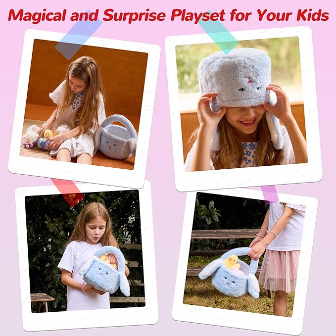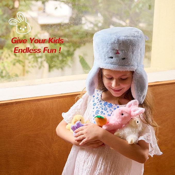 • ๐— ๐—ฎ๐—ด๐—ถ๐—ฐ๐—ฎ๐—น ๐—ฎ๐—ป๐—ฑ ๐—ฆ๐˜‚๐—ฟ๐—ฝ๐—ฟ๐—ถ๐˜€๐—ฒ ๐—œ๐—ป๐˜€๐—ถ๐—ฑ๐—ฒ : Seven-in-one Plush Stuffed Animals Bag Playset Toys, with Rabbit, Chick, Lamb, Carrot, Egg, Flower, Furry Bag! Surprise Basket Set gifts for girls Ages 3 4 5 6 7 8 9! Your girls will get a big surprise gifts! This amazing furry bag playset gift is sure to get the kids excited! They will love these adorable companions to play, cuddle and share their little secrets.