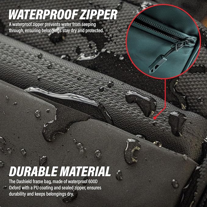 - Superior Material & Waterproof: Crafted from durable 600D Oxford fabric with a smooth PU film coating, this frame bag is waterproof, scratch-resistant, and built to last. The upgraded seam-sealed zipper withstands frequent use while keeping rainwater out, ensuring your belongings stay dry and protected.