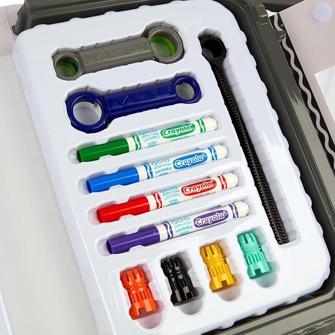 - CRAYOLA COLOURWHIRLS ARENA SET: Includes 1 Arena for 4 players, 4 Colourwhirl toys, 4 Markers, 2 Ramps, and a Carrying Case for colorful fun anywhere.
