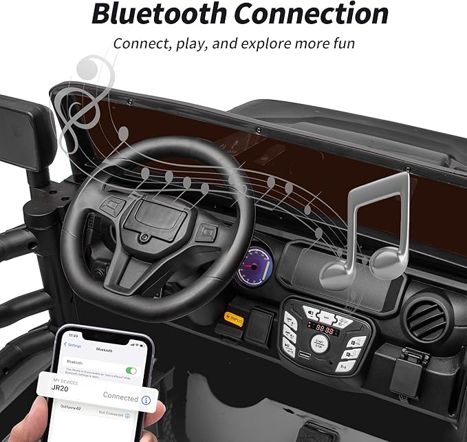 - High Security: Designed for safety, this ride on car features a 16mm solid steel axle and a 150 lbs weight capacity for superior durability. The soft-start system ensures smooth, controlled acceleration for a safer ride.