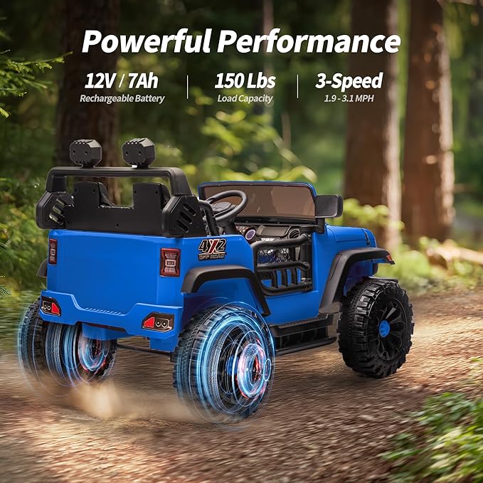 - High Security: Designed for safety, this ride on car features a 16mm solid steel axle and a 150 lbs weight capacity for superior durability. The soft-start system ensures smooth, controlled acceleration for a safer ride.