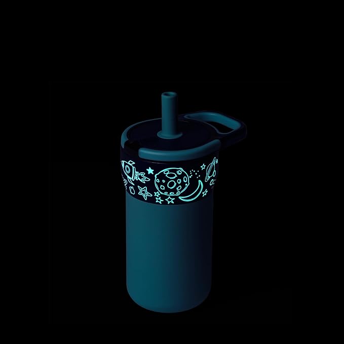 BrüMate Leap 12oz 100% Leakproof Kids Tumbler with Handle and Silicone Soft Straw | Drop Resistant Silicone Sleeve | For Kids 4+ | Insulated Stainless Steel | Cup Holder Friendly | 12oz (Outer Space)