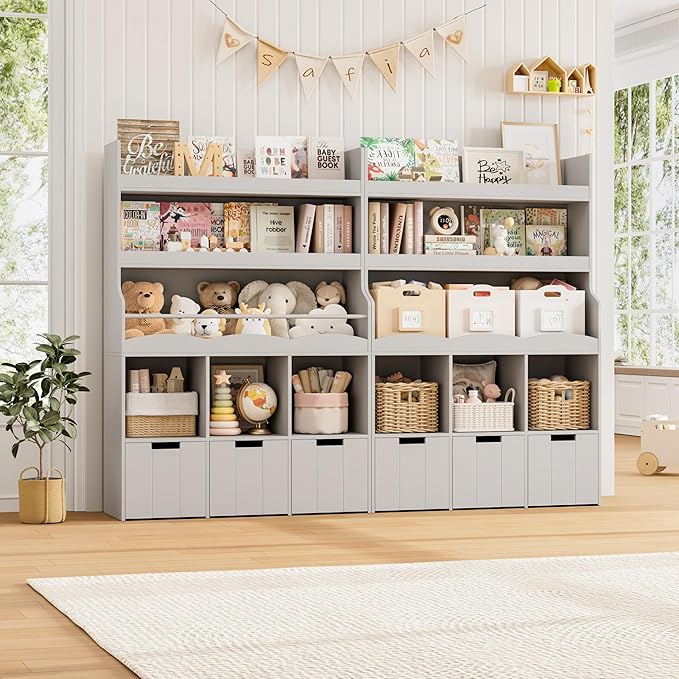 - Multifunctional Use: Combining vertical book shelf with toy chest into one piece, this distinct unit can not only fulfill your little one's love of reading with the sizeable book storage space, but also serves well as a wonderful toy storage organizer for kids room, playroom and living room