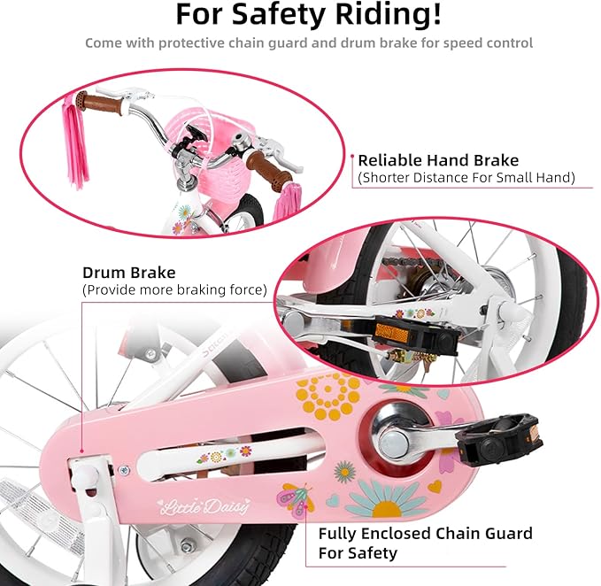 - Safer Riding - The Dual Handbrake( Front caliper Brake plus rear drum brake) offer ample stopping power with more safety, wide 2.125" pneumatic tires add more stability, Sturdy steel frame and crank, Non-slip resin pedal, enclosed chainguard, front & rear reflectors and wheel reflectors.