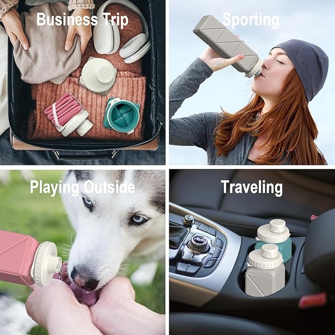 - SMOOTH TWIST-TO-FOLD FUNCTION THAT’S FUN TO USE: With an innovative twist-and-fold design, folding and unfolding the travel water bottle is smooth and quick. The flexible silicone structure makes adjusting the portable water bottle size effortless—both practical and satisfying to use every day.