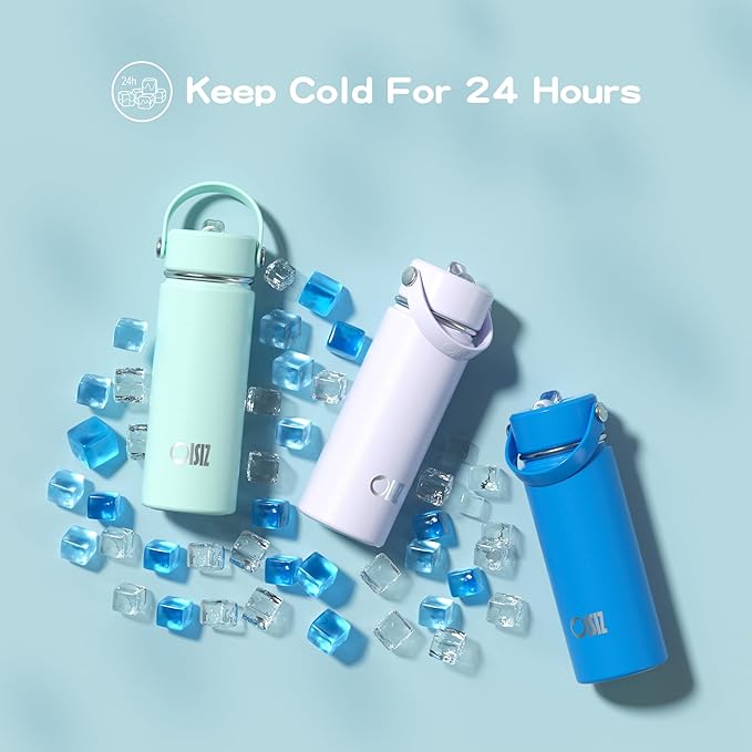 OISIZ 18oz Kids Water Bottle with Straw Lid, Vacuum Insulated Water Bottle 316 Stainless Steel Water Bottles for Kids for School, Leakproof Water Bottle, BPA Free and Keep Cold for 24 Hours