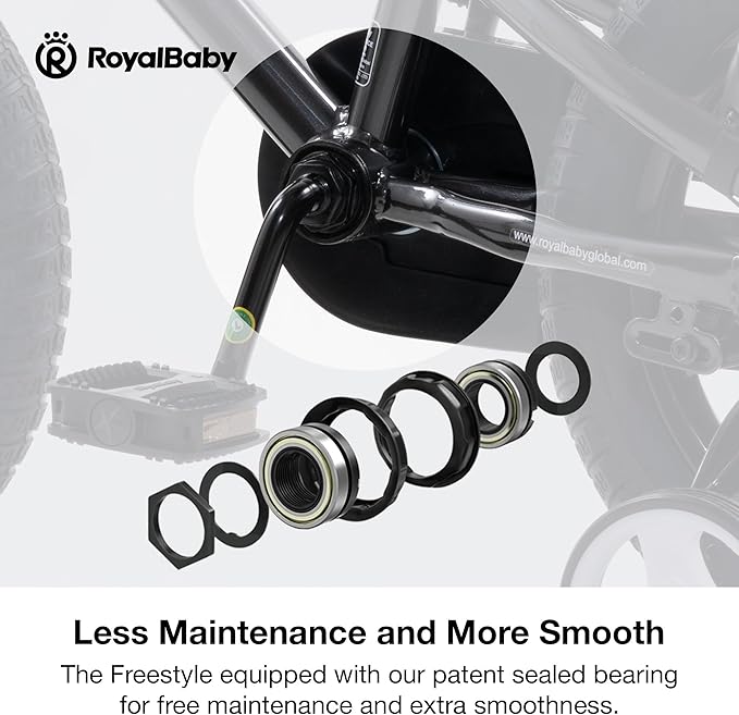 - ๐ฆ๐ฝ๐ฒ๐ฐ๐ถ๐ณ๐ถ๐ฐ๐ฎ๐น๐น๐ ๐๐ผ๐ฟ ๐๐ถ๐ฑ๐. Each bike equipped with RoyalBaby patent sealed bearing for smooth pedalling. The 12/14/16 inch bikes come with training wheels, making it easy to maintain balance and learn to pedal even for young beginners. The water bottle adds more joy to the ride. A fully adjustable seat and handlebar will give extra space when kids grow taller