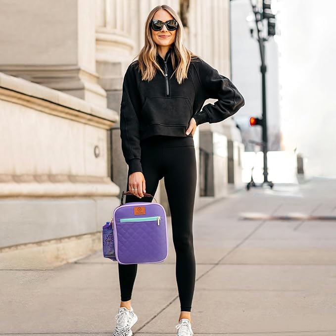 Genteen Lunch Bag for Women Men Girls Teens Insulated Leakproof LunchBox for Adult Reusable Lunch Box with Bottle Holder for Work Office School Travel Picnic-Purple/White