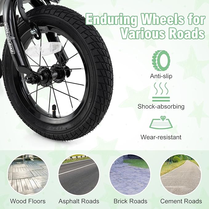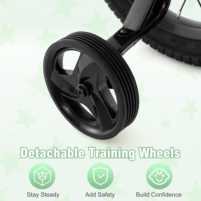 - Grow with Kids: The bicycle will grow with your kids with adjustable handlebar and seat. The handlebar and the seat are both height adjustable, allowing kids to find the optimal riding height. Plus, it also comes with 2 detachable training wheels for beginners to better keep balance.