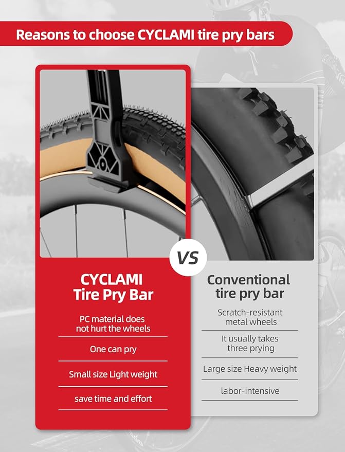 - 【Universal Fit for All Bike Types】Compatible with road, mountain, and hybrid bike tires (standard sizes), this versatile lever is a staple in every cyclist’s toolkit. Whether you’re fixing a flat on a skinny road tire or a thick mountain bike tread, its adaptive design ensures a secure grip and efficient leverage—no need for multiple tools