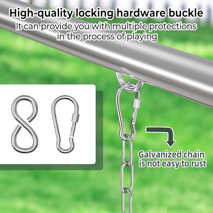 - Rust-Resistant Galvanized Chain: The swing features a robust 66-inch galvanized chain, specially coated with a durable layer to prevent rust and corrosion. This ensures long-lasting performance and extends the lifespan of the swing.