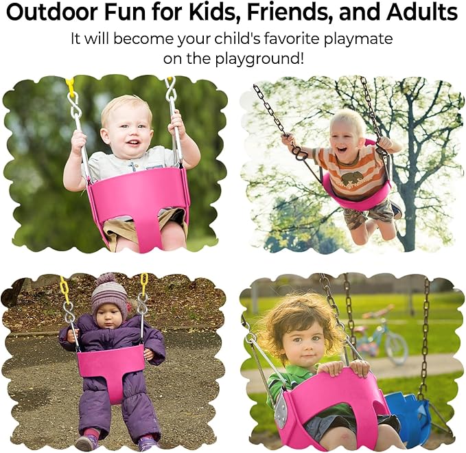 AGPTEK High Back Full Bucket Toddler Swing Seat with Yellow Coated Swing Chains and Carabiners Baby Swing Outdoor for Easy Install (Pink)