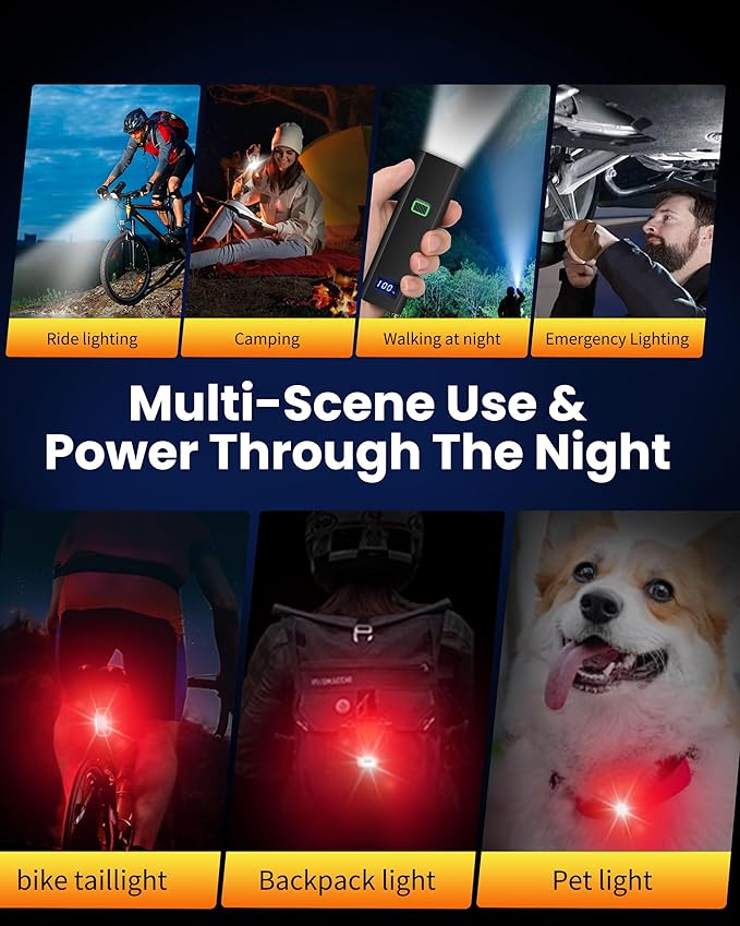 - WIDELY USED: It can also be used as a backpack light, helmet light, wheelchair light, skateboard light, stroller light, or clipped to your dog's leash to alert pedestrians and vehicles. A multifunctional lighting solution that meets your daily needs and improves the safety of various activities. What are you hesitating about when this bicycle lights combines portability with performance