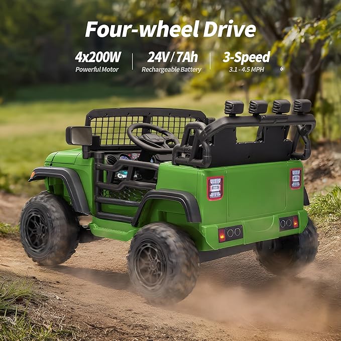 - Powerful Performance: This kids electric car is equipped with a 4X200W motor and supports easy switching between 2WD and 4WD, delivering powerful and stable performance. Featuring four shock-absorbing tires, it easily navigates various obstacles, providing kids with an authentic driving experience.