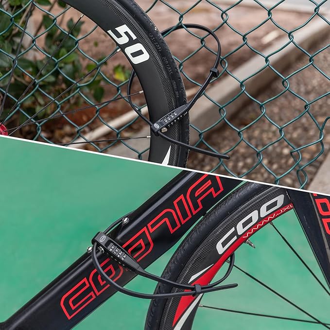 - 【Ideal for Quick Stops】: Whether you’re running an errand, meeting a friend for lunch, or browsing the farmer’s market, this compact cable lock is an innovative theft deterrent device. Designed for life on the go—perfect for securing your bicycle, helmet, luggage, baby strollers, and more for short times. It is not advised to rely on them to protect your vehicle overnight in the more deserted parts of town!
