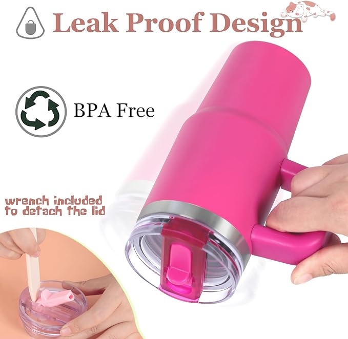 - EASY TO CLEAN: The 14 oz flip straw tumbler with handle comes with a wrench and a straw brush. You can use the wrench to disassemble the detachable lid to deep cleaning the lid.