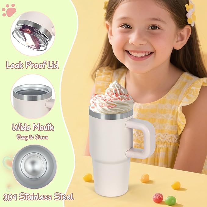 - FLIP STRAW LID: The 14 oz flip straw tumbler with handle is leak proof, and your kids can take it everywhere they go.