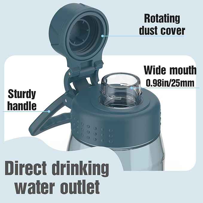 Water Bottle 32oz, clear water bottle with Spout Lid and Carry Handle, Reusable, Tritan, BPA Free, Hiking Water Bottle Suitable for Travel, Outdoors, Gym, Travel, Home, School (Dark blue)
