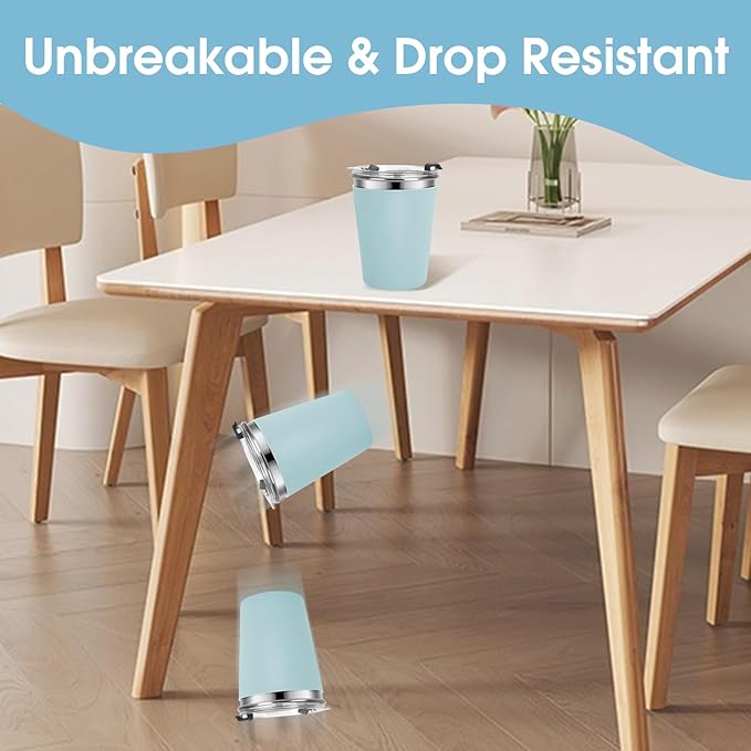 - Non-Slip and Heat Insulation: The 12oz metal kids travel cups for drinking with silicone sleeve can let your hands in comfort, with no worries about harsh hot or cold shocks also identifying which cup is yours. These travel mug with lids is dishwasher safe and easy to stackable. Perfect for all ages.