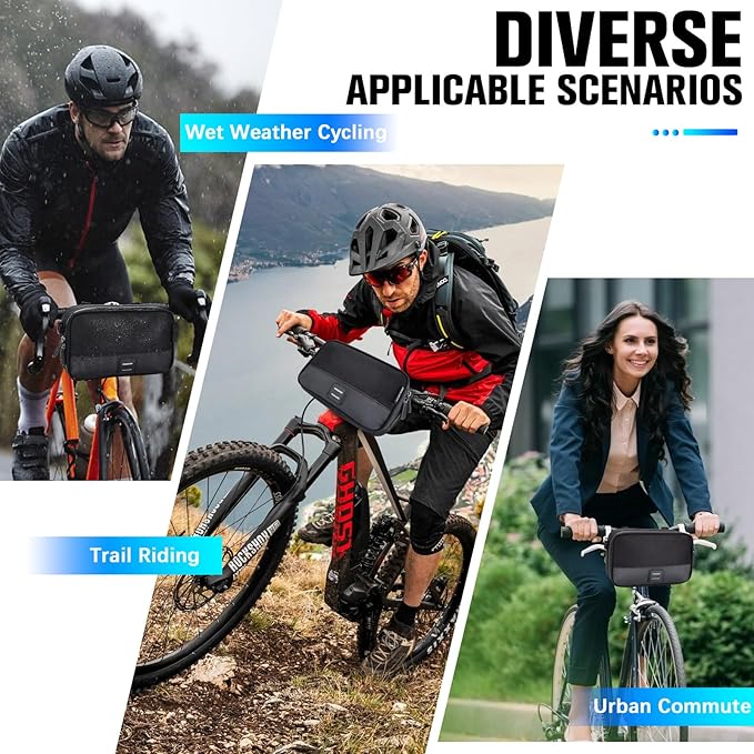 - Waterproof Performance: The handlebar bag features waterproof fabric with sealed waterproof zippers to effectively repel rain splashes. Keeps your belongings safe in rainy conditions. (Note: Not designed for heavy storms, prolonged rainfall, or extreme humidity.)