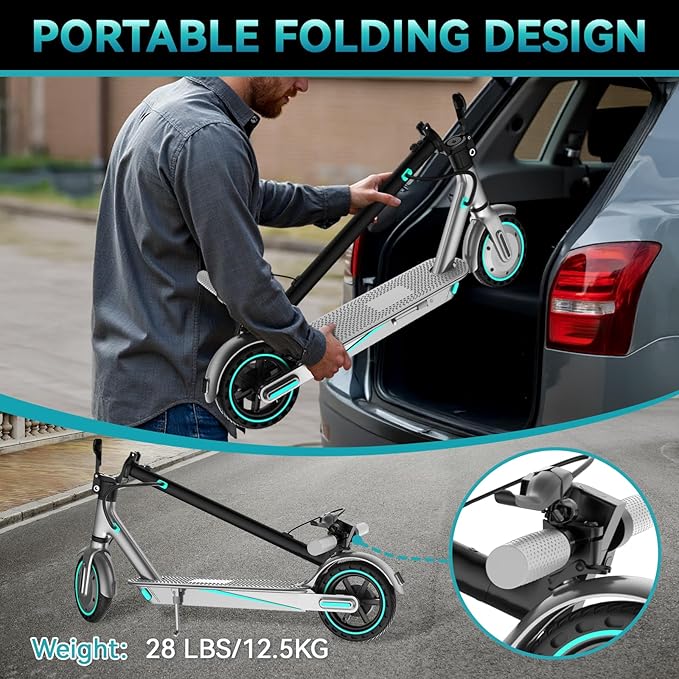 - 【Portable and Folding Design】: Foldable design makes the e-scooter is easy to store in your car, school or office. This electric scooter only weighs 32.2 pounds and it's easy for you to take it anywhere.