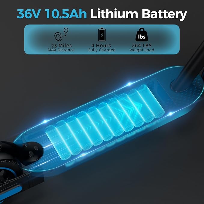 - 【Portable and Folding Design】: Foldable design makes the e-scooter is easy to store in your car, school or office. This electric scooter only weighs 32.2 pounds and it's easy for you to take it anywhere.