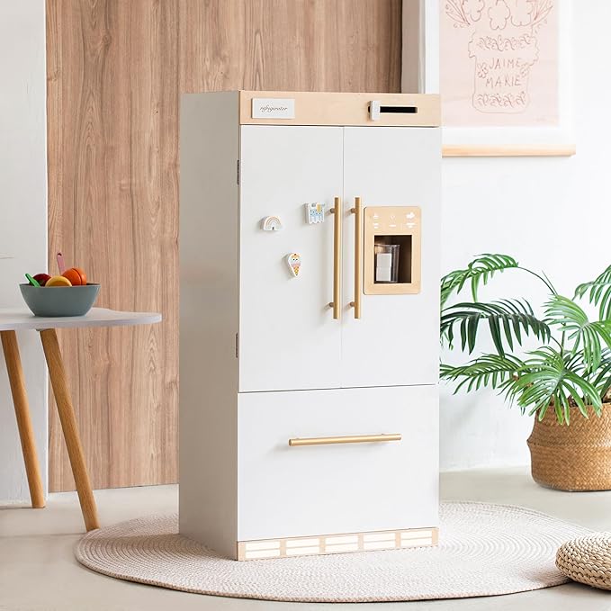 - Immersive Play & Realistic Features: Ignite your child’s imagination with an interactive refrigerator that feels just like the real deal. The built-in ice maker dispenses wooden ice cubes and the temperature control knob adds a fun, hands-on twist to every play session