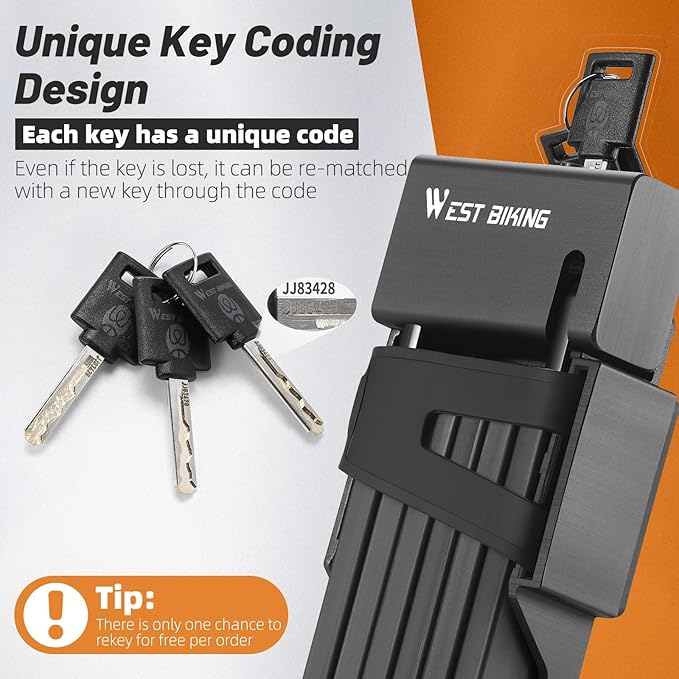 - 【3 keys included in the delivery scope】Bike locks heavy duty anti theft with 3 keys that you can use every day, if you accidentally lose it, you can keep another key at home. Tip: Each key has a clear code. Even if the key is lost, you can use the code to replace a new key.