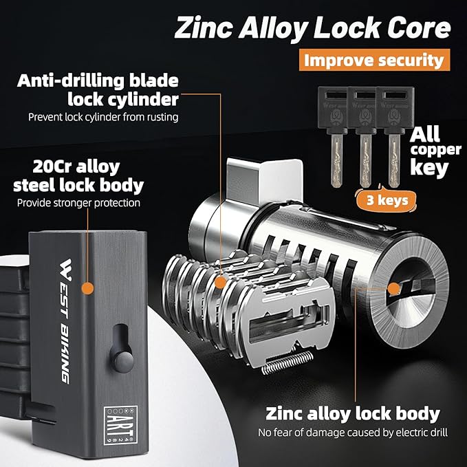 - 【Bicycle lock high safety】Bike lock is made of 6mm high-strength steel, which is resistant to cutting, shear, corrosion resistance, can withstand high torsion and tension, and has passed the Dutch ART safety certification, with a safety of up to 12 levels to prevent bicycle theft and property damage.