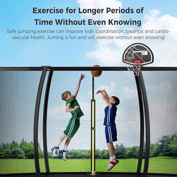 - 【The Ultimate Gift for Kids】A trampoline offers more than just fun; it's a gift of good health. It boosts the immune system, strengthens the skeletal system, helps control weight, and serves as a stress reliever. Our trampoline for kids and adults is a perfect outdoor gift