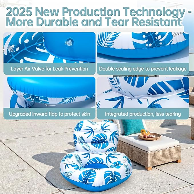 - [Easy Use&Portable] The pool float has 3 independent chambers, which are easy to use and quickly inflate and deflate,making them ideal for pool parties,pool toys, beach accessories, vacations.Equipped with with two repair patch, which can extend the service life of the pool float