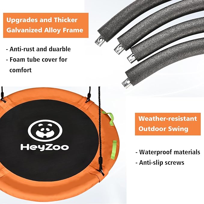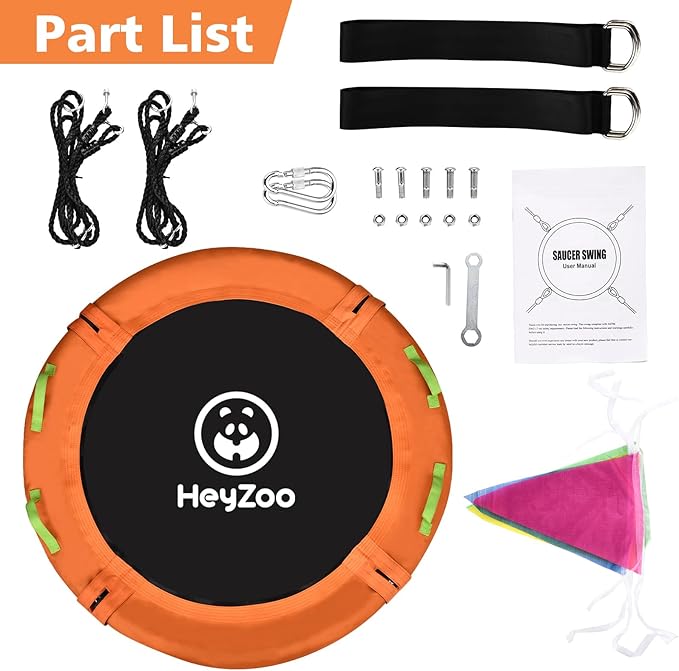 - 48 Inch Super Large: Compared to most saucer swings, Heyzoo 48 inch swing is more suitable for multi-child families. It can easily carry 3-4 children or adults and children playing together, allowing the whole family to enjoy fun times.