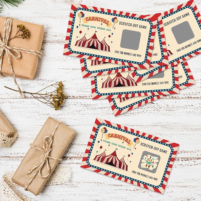 50 Psc Carnival Come One Come All Scratch off Game Cards, Retro Circus Theme Scratch Cards for Birthday Circus Party Baby Shower, Classroom Party Supplies, Lottery Group Games Activity