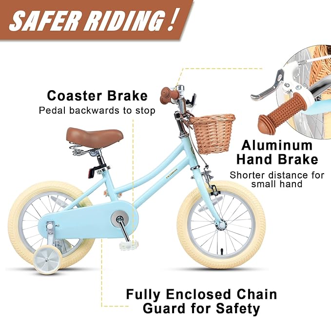 - 【Safe & Durable】- Coaster brake makes it easy to learn. Enclosed chain guard prevents your little one touching the chain. Durable high tensile steel construction provides long-lasting reliability, backed by a LIFETIME warranty on the frame.