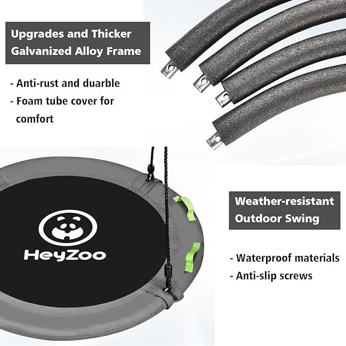 - 48 Inch Super Large: Compared to most saucer swings, Heyzoo 48 inch swing is more suitable for multi-child families. It can easily carry 3-4 children or adults and children playing together, allowing the whole family to enjoy fun times.