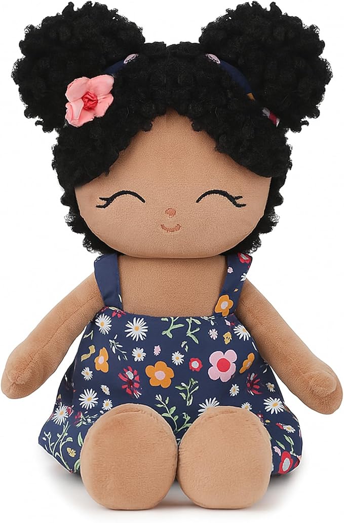 Soft Baby Doll Toys (16'') Baby Rag Doll for Girls Birthday Gift Christmas Plush Toys Gift for Toddler Kids (Black)