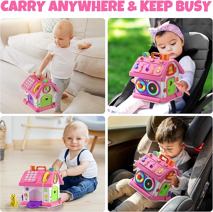 - Perfect All-in-One Montessori Toy House: The educational toys for 1 year old girl have over 24 different functions contains musical bird, colorful lights, pet, car toy, radio, telephone, clock and countless Montessori activities to develop fine motor skills in 1+ year old