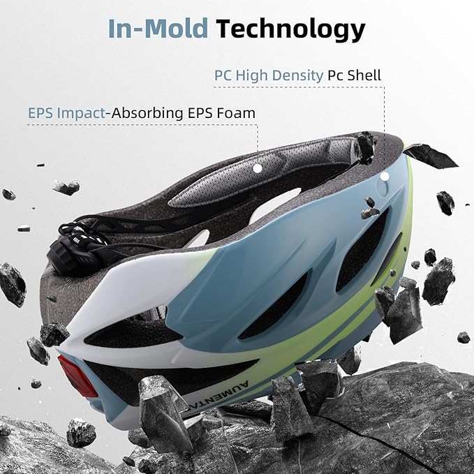 - DUAL-CERTIFIED SAFETY: AUMENTAR adult cycling helmets meet CPSC & CE standards, featuring PC+EPS impact-absorbing structure with 360° protection. Ideal for mountain/road/e-bike riders seeking certified safety.