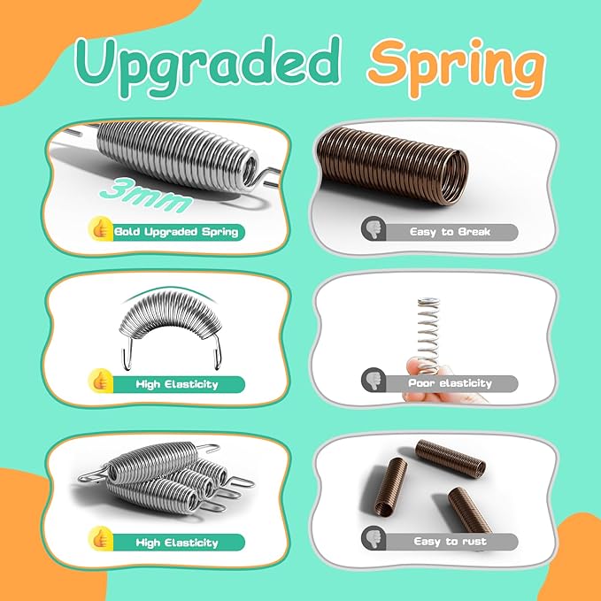 - Easy Install & Free accessories: The baby trampoline comes with a detailed assembly manual and a spring installation tool. It includes accessories like sandbags, ocean balls, swings, and rings for children aged 3 to 12. Suitable for indoor, outdoor, garden, or yard use, it promotes physical activity and cognitive development. Tip: Install the springs diagonally for easier setup. Contact us for any assistance.