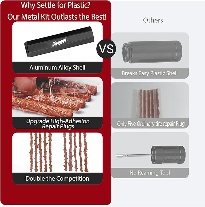- Complete Repair Solution:Comes with all the necessary tools for tubeless tire repair. Although we have only one tool instead of two like some competitors, it is designed to efficiently perform all repair functions, including smoothing the hole and inserting the plugs.