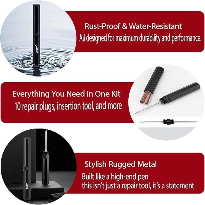- Sufficient Repair Plugs:Includes 10 sticks of 2.5mm bacon strips. These plugs are effective in sealing various hole sizes. In case of an unusually large hole, you can twist multiple strips together for a reliable repair.