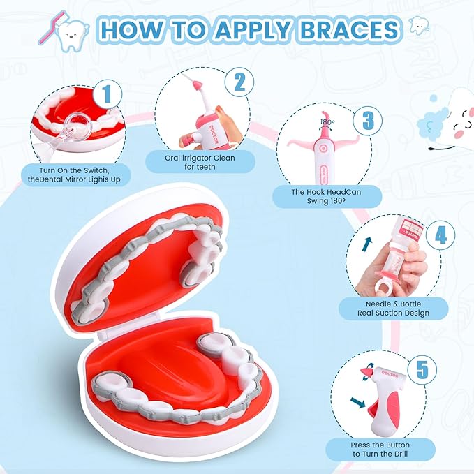 - π πππ ππππππ ππππππππππ-Includes adjustable kid-sized lab coat,dental models, retainer, dental braces, tooth decay stickers etc. for immersive pretend play β great for sibling teamwork or playdates!