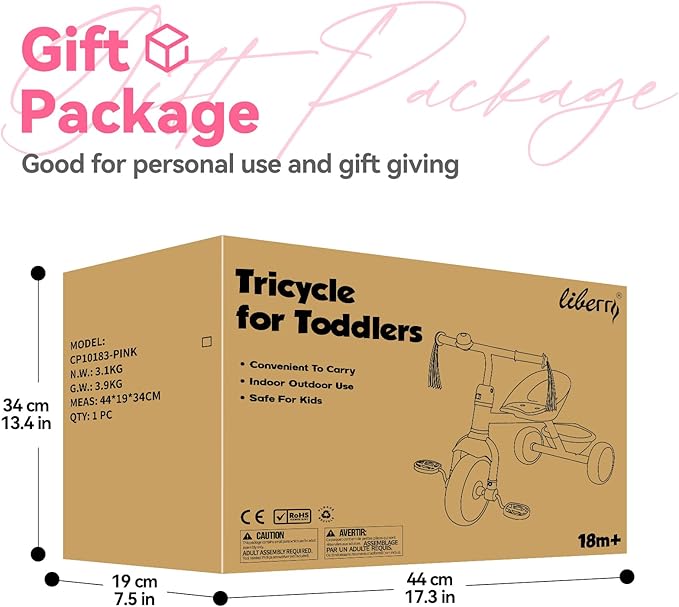 - FIRST GIFT FOR BABY: Liberry ride on toy includes a pink tricycle, an L-shaped screwdriver, a wrench and an instruction. This toddler tricycles 2-4 years old with streamers and easy setup makes an ideal festival birthday present for your kids