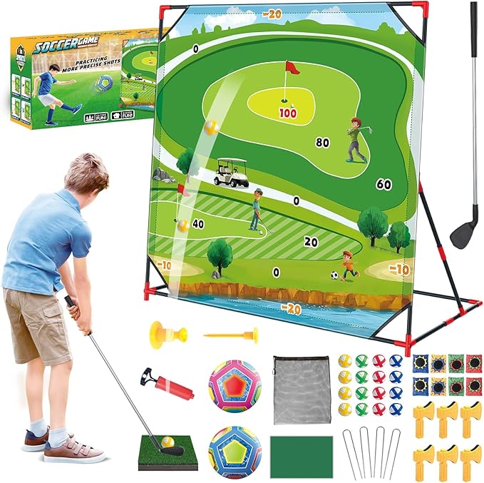 Golf Game Play Set for Kids, Golf Chipping Games with Sticky Golf Balls Darts Soccer Balls & Bean Bags, Fun Outdoor Lawn Beach Backyard Party Activities for Teens Adults