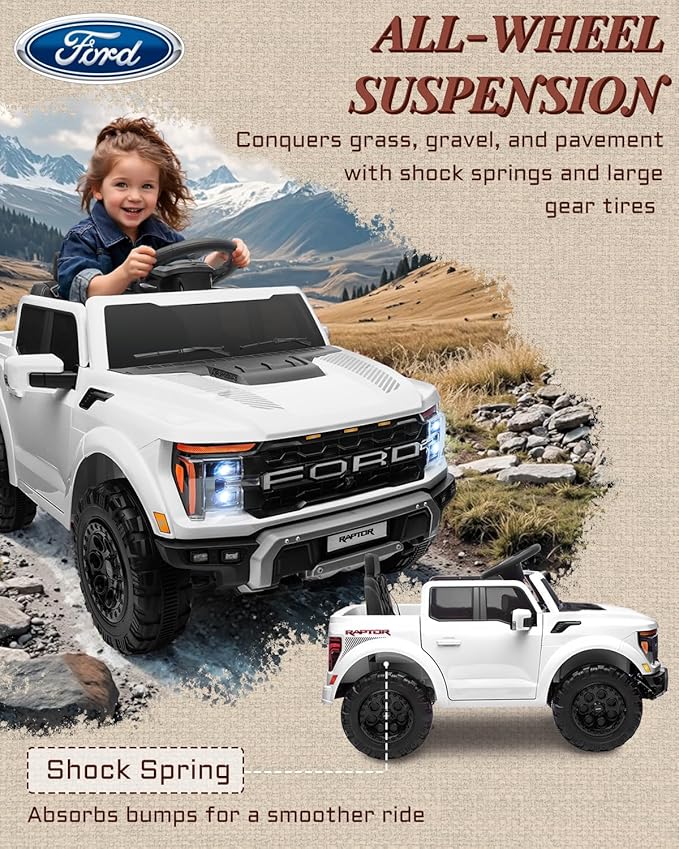 - OFFICIALLY LICENSED BY FORD F-150 RAPTOR: This 12V ride on toys for kids for kids is not just a toy—it’s a miniature take on America’s bestselling pickup, offering kids a feel of the real thing every time they hit the driveway