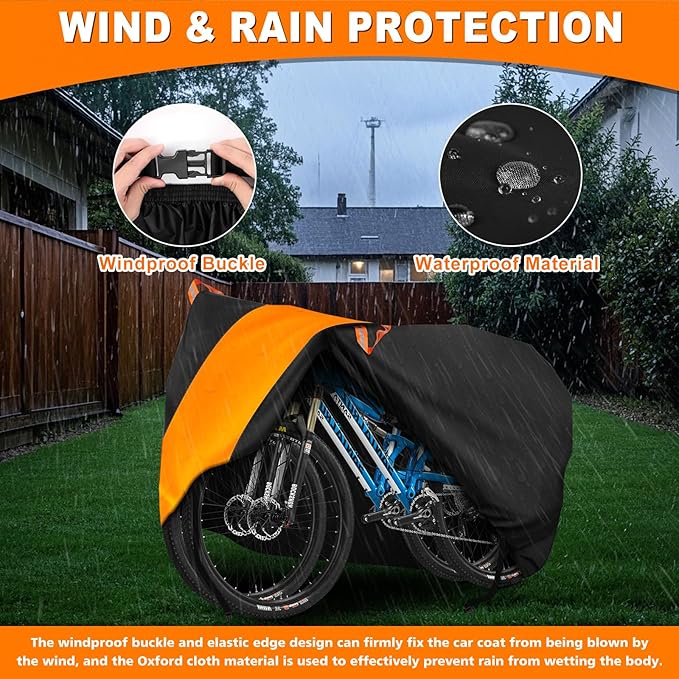- Windproof Design - The elastic band and windproof buckle at the bottom can fit your bike tightly, which can effectively fix the bike cover against windy weather, the fabric and color stitching are double stitched to reinforce the windproof and waterproof of the bike cover, which is the ideal choice for outdoor bike protection covers