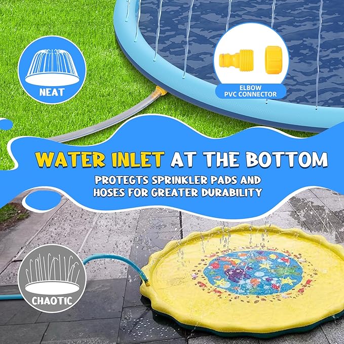 - 【 Spacious Inflatable Water Slide & Splash Zone】 This 80" inflatable splash pad slide creates a shared aquatic playground for kids, parents, and pets. Perfect for relay races, shallow water games, and backyard bonding. Combines splash pad cooling with slide-like excitement, supporting group play under the sun.