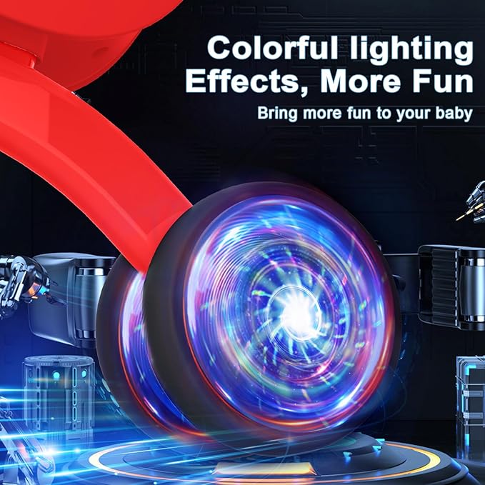 - 【COLORFUL LIGHTING DESIGN】 To enhance children's fun, we have specially designed the colorful lighting rear wheel. No batteries are required, just spin the wheels to glow. Greatly increases the fun for children.