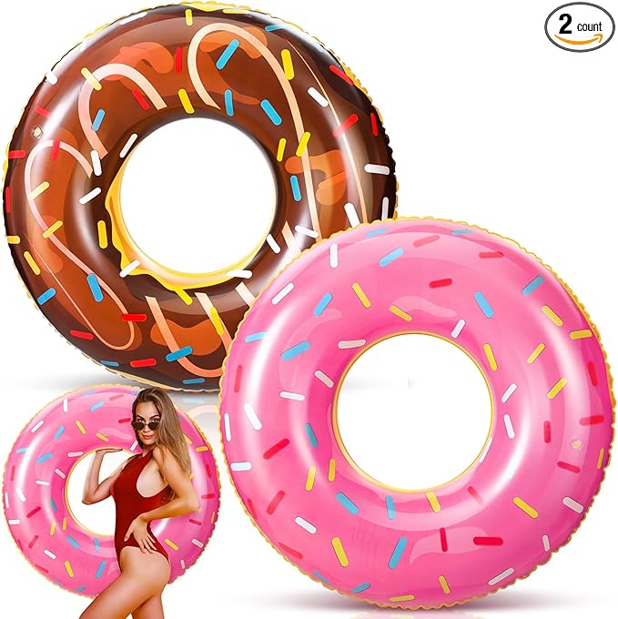 - Large Inflatable Donut Swim Ring: this pack contains 2 inflatable tubes and is a suitable gift for a donut party birthday, summer vacation or other swimming related celebration Its eye-catching design and cute donut style make it a practical gift that can enhance the fun of most pool parties